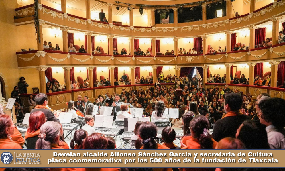 En un acto lleno de simbolismo y orgullo por la historia de la ciudad capital, el alcalde Alfonso Sánchez García encabezó la develación de la placa conmemorativa por los 500 años de la Fundación de Tlaxcala, ceremonia que tuvo lugar en el Teatro Xicohténcatl, recinto que engalanó la ocasión.