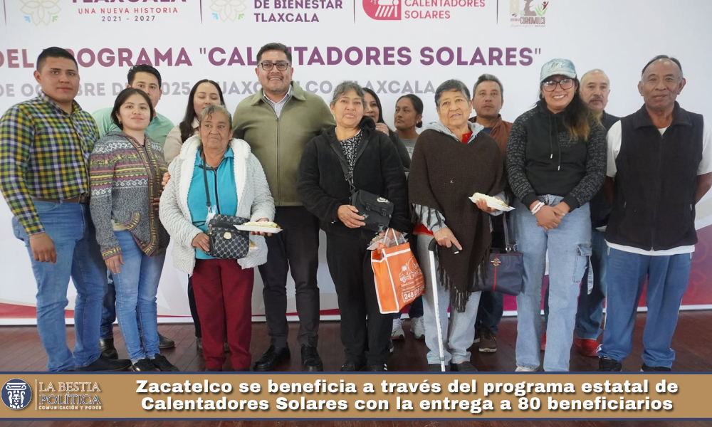 Esta mañana, la Secretaría de Bienestar de Tlaxcala, en colaboración con el gobierno municipal de Zacatelco, presidido por José Miguel Acatzi Luna, llevó a cabo la entrega de 80 calentadores solares mediante este programa estatal.