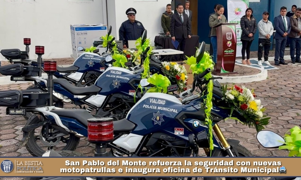 Con el objetivo de fortalecer las acciones de seguridad y mejorar la atención a la ciudadanía, el Ayuntamiento de San Pablo del Monte (SPM) adquirió cuatro motopatrullas para reforzar las labores de vialidad y agilizar los tiempos de respuesta de la policía municipal.