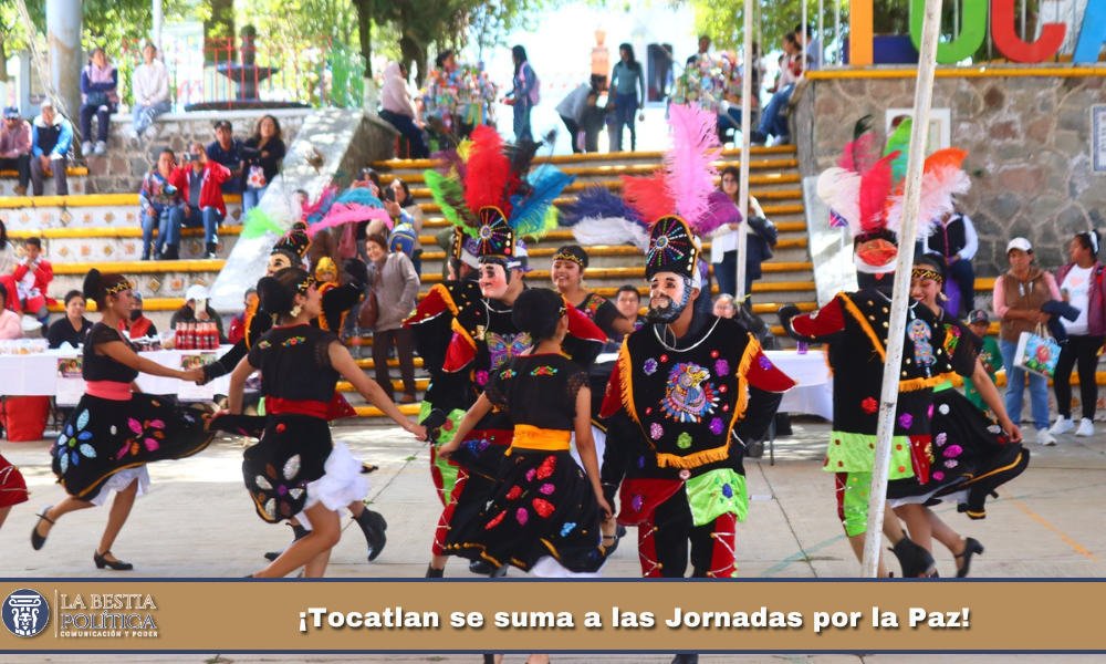 El Gobierno Municipal de Tocatlan, encabezado por el C. Sergio Avendaño Pérez, llego en nuestro Tocatlán la Jornada por la Paz, la cual representa la unión institucional de los tres niveles de gobierno para interactuar con la ciudadanía. Todo este esfuerzo está encaminado a generar paz en nuestra sociedad y significa un telar firme donde cada hilo representa el acceso a la justicia, la salud, la educación y el empleo.