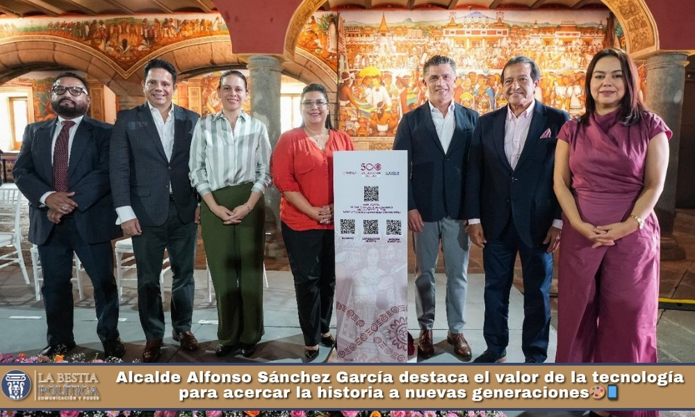 “La tecnología se consolida como una herramienta esencial para acercar el pasado al presente y convertir la historia en una experiencia viva, accesible y compartida”, afirmó el presidente municipal de Tlaxcala, Alfonso Sánchez García, al participar en la develación de los códigos QR del audiovisual “Los murales del Palacio de Gobierno en voz del maestro Desiderio Hernández Xochitiotzin”.