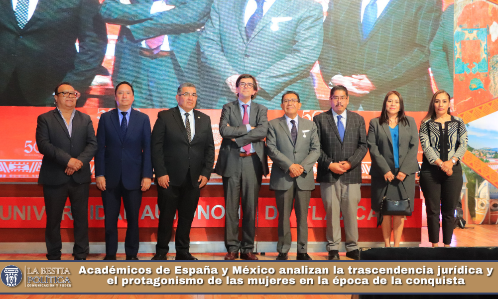 Dando continuidad a las actividades del 𝐂𝐨𝐧𝐠𝐫𝐞𝐬𝐨 𝐈𝐛𝐞𝐫𝐨𝐚𝐦𝐞𝐫𝐢𝐜𝐚𝐧𝐨 a propósito de los 𝟓𝟎0 𝐚𝐧̃𝐨𝐬 𝐝𝐞 𝐥𝐚 𝐟𝐮𝐧𝐝𝐚𝐜𝐢𝐨́𝐧 𝐝𝐞 𝐥𝐚 𝐂𝐢𝐮𝐝𝐚𝐝 𝐝𝐞 𝐓𝐥𝐚𝐱𝐜𝐚𝐥𝐚, investigadores de España y México reflexionaron sobre dos vertientes que convergen en la historia de Tlaxcala, el papel preponderante del Derecho y el protagonismo de las mujeres tlaxcaltecas como representantes de las alianzas ganadoras en la conquista.