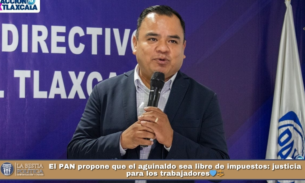 El Partido Acción Nacional (PAN), a través de su Comité Directivo Estatal en Tlaxcala, encabezado por Ángelo Gutiérrez Hernández, expresó su respaldo a la iniciativa presentada por legisladores federales del blanquiazul para eliminar el cobro del Impuesto Sobre la Renta (ISR) al aguinaldo de todos los trabajadores, buscando que este ingreso llegue íntegro a las familias mexicanas.