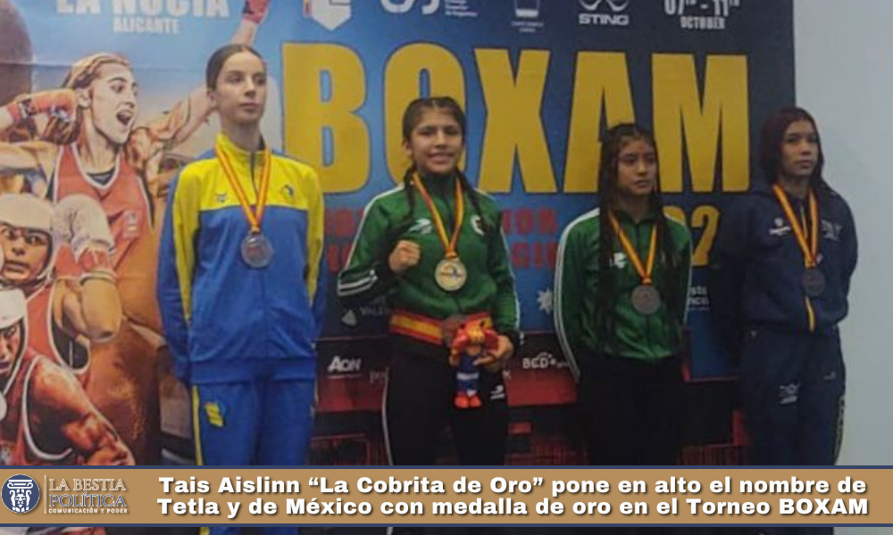 El Presidente Municipal, Lic. Giovani Montiel López, felicita con orgullo a Tais Aislinn Escárcega Ordóñez, conocida como “La Cobrita de Oro”, por haber obtenido el primer lugar con medalla de oro y proclamarse campeona del Torneo BOXAM, en la final México vs Ucrania, dentro de la categoría junior, división 48 kg, durante su destacada participación en el torneo celebrado en La Nucía, Alicante, España.