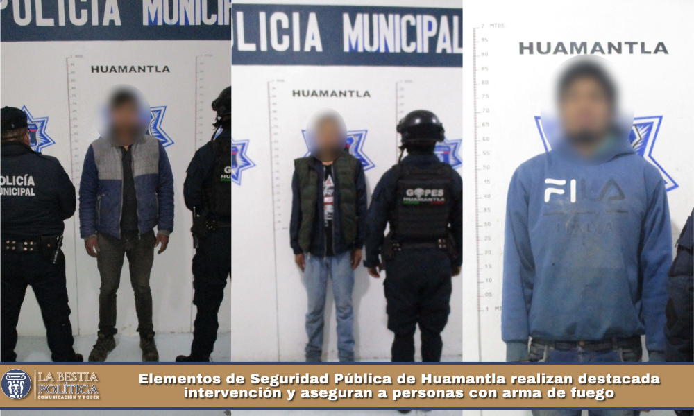 El Gobierno Municipal de Huamantla, a través de la Dirección de Seguridad Pública, Tránsito y Protección Civil, informa que durante la madrugada de este viernes 10 de octubre, elementos de la corporación lograron el aseguramiento de tres personas y el decomiso de un arma de fuego con cartuchos útiles, en una acción coordinada que respondió a un reporte intermunicipal.