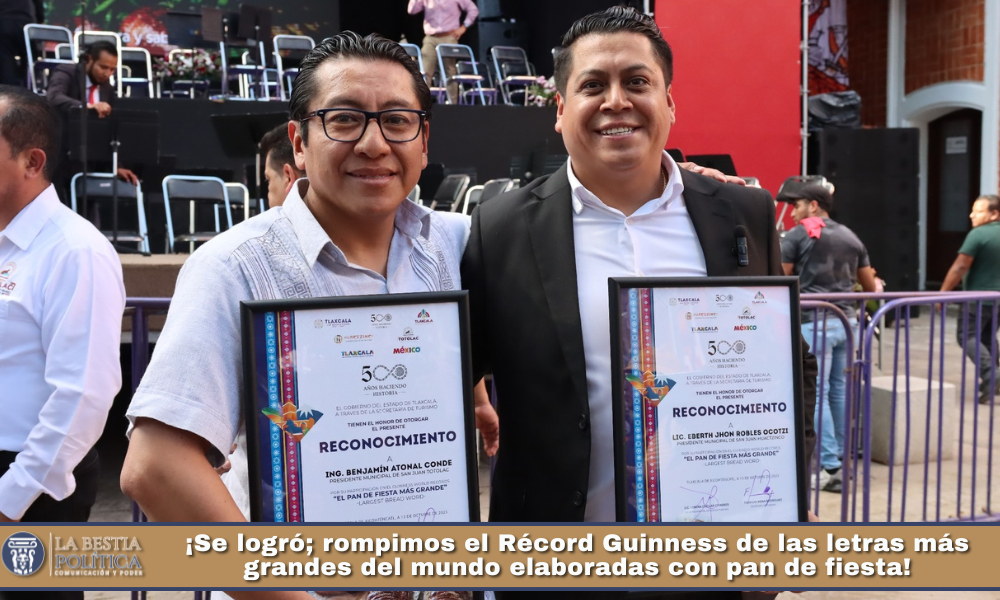 La verificación minuciosa estuvo a cargo de la organización Guinness World Records, que supervisó la elaboración de 𝟮 𝗺𝗶𝗹 𝟱𝟴𝟭 𝗽𝗶𝗲𝘇𝗮𝘀 𝗱𝗲 𝗽𝗮𝗻 𝗱𝗲 𝗳𝗶𝗲𝘀𝘁𝗮 𝗾𝘂𝗲 𝘂𝗻𝗶𝗱𝗮𝘀 𝗱𝗶𝗲𝗿𝗼𝗻 𝗳𝗼𝗿𝗺𝗮 𝗮 𝗹𝗮 𝗽𝗮𝗹𝗮𝗯𝗿𝗮 “𝗧𝗹𝗮𝘅𝗰𝗮𝗹𝗮”, logro que fue resultado de la suma de esfuerzos de artesanos y tahoneros de los municipios de San Juan Totolac y San Juan Huactzinco, quienes preservan con orgullo una tradición convertida en símbolo de identidad y patrimonio gastronómico.