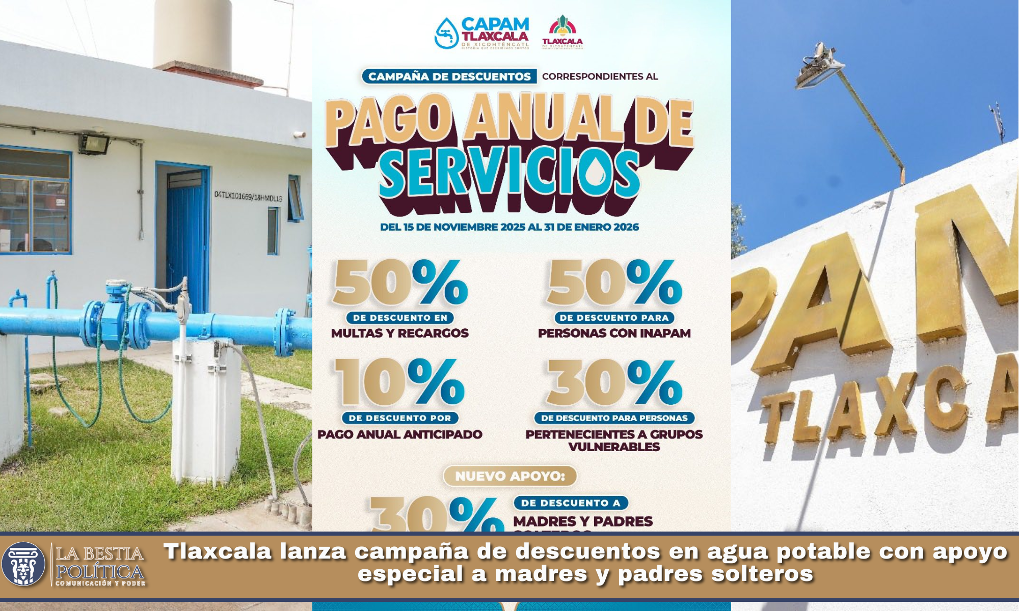 El Ayuntamiento de Tlaxcala, encabezado por el presidente municipal Alfonso Sánchez García, implementará una nueva campaña de descuentos en el pago del servicio de agua potable a través de la Comisión de Agua Potable y Alcantarillado del Municipio (CAPAM), como parte de su compromiso con el bienestar de las familias capitalinas.
