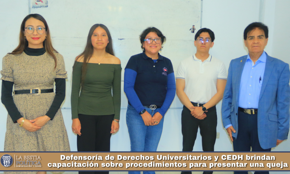 La Defensoría de los Derechos Universitarios de la Universidad Autónoma de Tlaxcala (UATx) organizó una capacitación sobre 𝐏𝐫𝐨𝐜𝐞𝐝𝐢𝐦𝐢𝐞𝐧𝐭𝐨 𝐝𝐞 𝐥𝐚 𝐩𝐫𝐞𝐬𝐞𝐧𝐭𝐚𝐜𝐢𝐨́𝐧 𝐝𝐞 𝐮𝐧𝐚 𝐪𝐮𝐞𝐣𝐚 𝐚𝐧𝐭𝐞 𝐥𝐚 𝐂𝐨𝐦𝐢𝐬𝐢𝐨́𝐧 𝐄𝐬𝐭𝐚𝐭𝐚𝐥 𝐝𝐞 𝐃𝐞𝐫𝐞𝐜𝐡𝐨𝐬 𝐇𝐮𝐦𝐚𝐧𝐨𝐬 𝐝𝐞 𝐓𝐥𝐚𝐱𝐜𝐚𝐥𝐚 (CEDHT), que impartió  la Licenciada Linsday Cruz Pérez, Defensora de Derechos Humanos de la CEDHT en la Facultad de Trabajo Social, Sociología y Psicología.