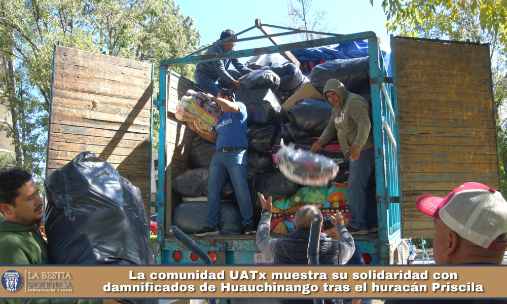 En un acto de solidaridad y compromiso social, el Doctor  Serafín Ortiz Ortiz, Rector de la Universidad Autónoma de Tlaxcala (UATx), acompañado por el Notario José Aarón Pérez Carro, Presidente del Colegio de Notarios de Tlaxcala, y por la estructura de gobierno de esta Casa de Estudios, dio el banderazo de salida de 26,137 víveres para los damnificados afectados por el huracán Priscila en Huauchinango, Puebla, ayuda que fue recibida por el Ingeniero Rogelio López Angulo, alcalde del municipio poblano.