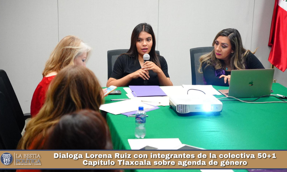 En el Salón Blanco del Congreso del Estado, la diputada Lorena Ruiz García, presidenta de la Comisión de Igualdad de Género y Contra la Trata de Personas de la LXV Legislatura, sostuvo una reunión con mujeres integrantes de la colectiva 50+1 Capítulo Tlaxcala, con el objetivo de recibir y analizar un documento que contiene consideraciones respecto al impacto en la normatividad estatal, sobre las causas que afectan a la población femenina en Tlaxcala.