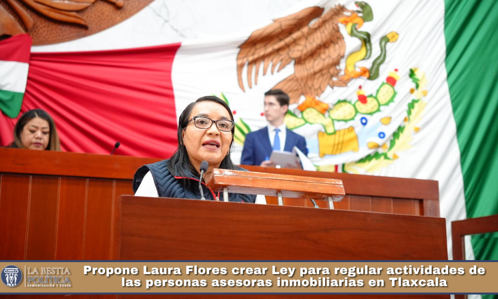 En sesión ordinaria de la LXV Legislatura, la diputada Laura Yamili Flores Lozano, presentó la iniciativa para expedir la Ley que Regula las Actividades de las Personas Asesoras Inmobiliarias en el Estado de Tlaxcala, con el propósito de otorgar certeza jurídica, transparencia y profesionalismo al sector inmobiliario en la entidad.
