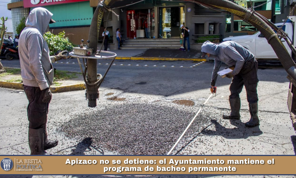 El Ayuntamiento de Apizaco, que encabeza el presidente municipal Javier Rivera Bonilla, mantiene activo el Programa de Bacheo Permanente, con el objetivo de mejorar las condiciones de las vialidades que se han visto afectadas por las recientes lluvias y garantizar una circulación más segura para automovilistas y peatones.