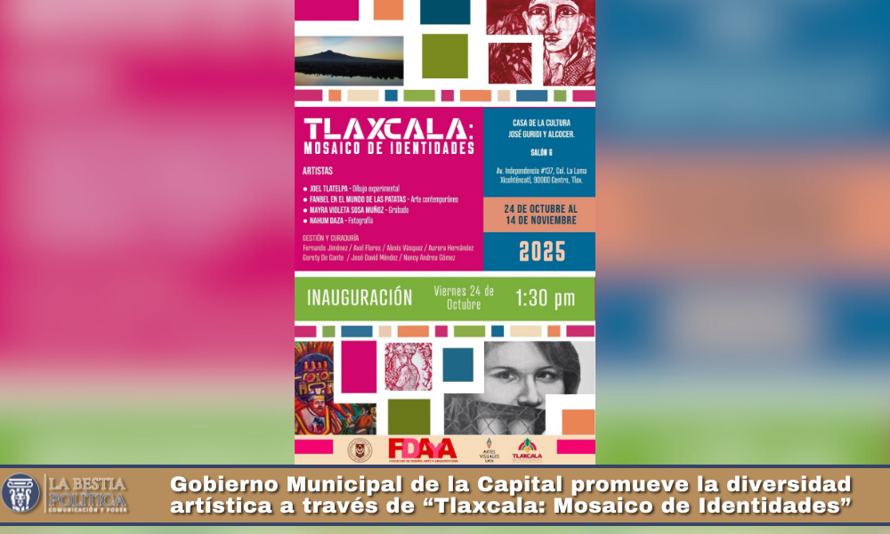 Comprometido con la promoción y difusión del arte, el Gobierno Municipal de Tlaxcala que encabeza Alfonso Sánchez García, a través de la Dirección de Cultura, impulsa una nueva expresión del talento joven con la exposición “Tlaxcala: Mosaico de Identidades”, una muestra que celebra la riqueza cultural y la pluralidad artística de nuestro estado.