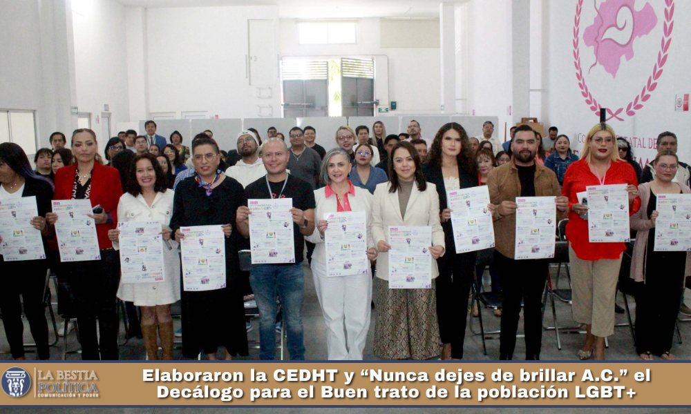 Con la convicción de reafirmar el derecho de todas las personas a vivir con dignidad, ser reconocidas, respetadas y valoradas por quienes son, la Comisión Estatal de Derechos Humanos de Tlaxcala (CEDHT) y la asociación civil “Nunca dejes de brillar”, presentaron el “Decálogo para el Buen trato de la población LGBT+”.