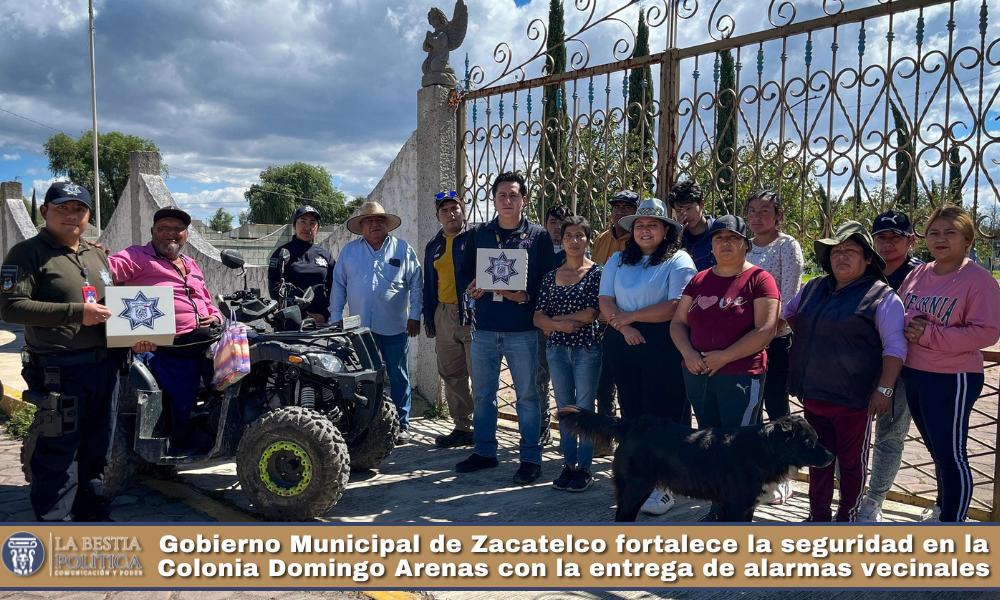 Como parte del compromiso por reforzar la seguridad y promover la participación ciudadana, el Gobierno Municipal de Zacatelco, encabezado por el presidente José Miguel Acatzi Luna, a través del área de Prevención del Delito y Proximidad Social, llevó a cabo la entrega de dos alarmas vecinales en la calle Zacatelco, de la Colonia Domingo Arenas.