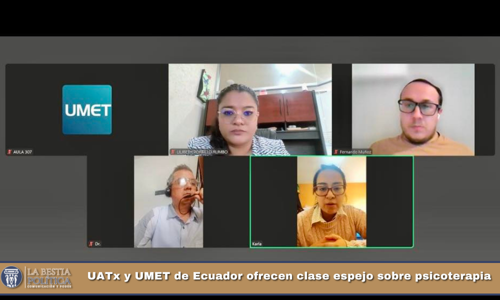 La Universidad Autónoma de Tlaxcala (UATx) y la Universidad Metropolitana de Ecuador (UMET) realizaron una clase espejo de las unidades de aprendizaje “Técnicas en Psicoterapia Humanista” y “Bases y Enfoques Generales de la Psicoterapia”, la cual forma parte de una estrecha colaboración académica internacional entre ambas instituciones, como parte del convenio que suscribieron para tal propósito.