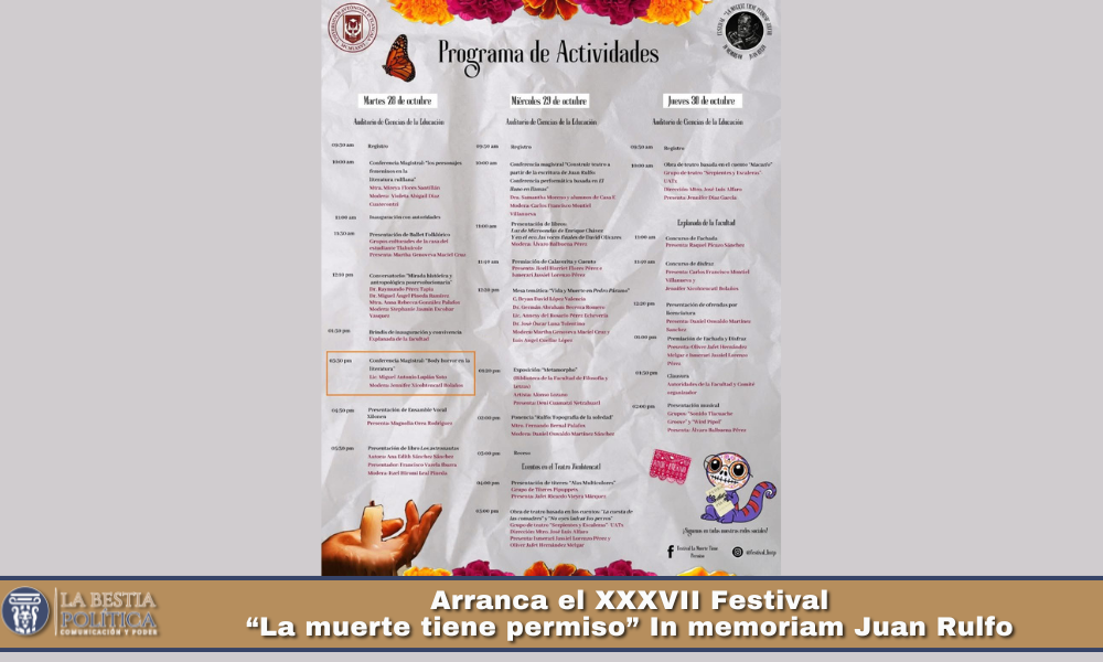 El Festival “La muerte tiene permiso” es uno de los eventos académicos y culturales de mayor tradición de la Facultad de Filosofía y Letras de la Universidad Autónoma de Tlaxcala (FFyL-UATx) y también uno de los más esperados por toda la comunidad universitaria y su edición número 37 inicia este martes.