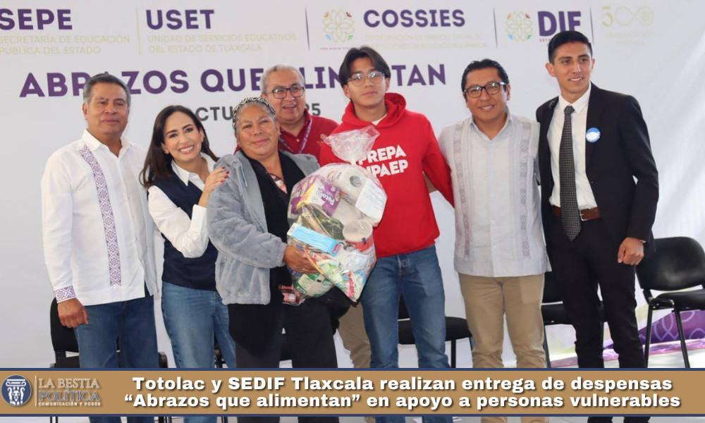 El pasado viernes, el municipio de Totolac formó parte de un acto de amor y solidaridad hacia cientos de personas en situación de vulnerabilidad mediante la entrega de despensas del programa “Abrazos que alimentan”, una iniciativa conjunta del SEDIF Tlaxcala, la Coordinación de Servicio Social de Instituciones de Educación Superior (COSSIES) y el SMDIF Totolac.
