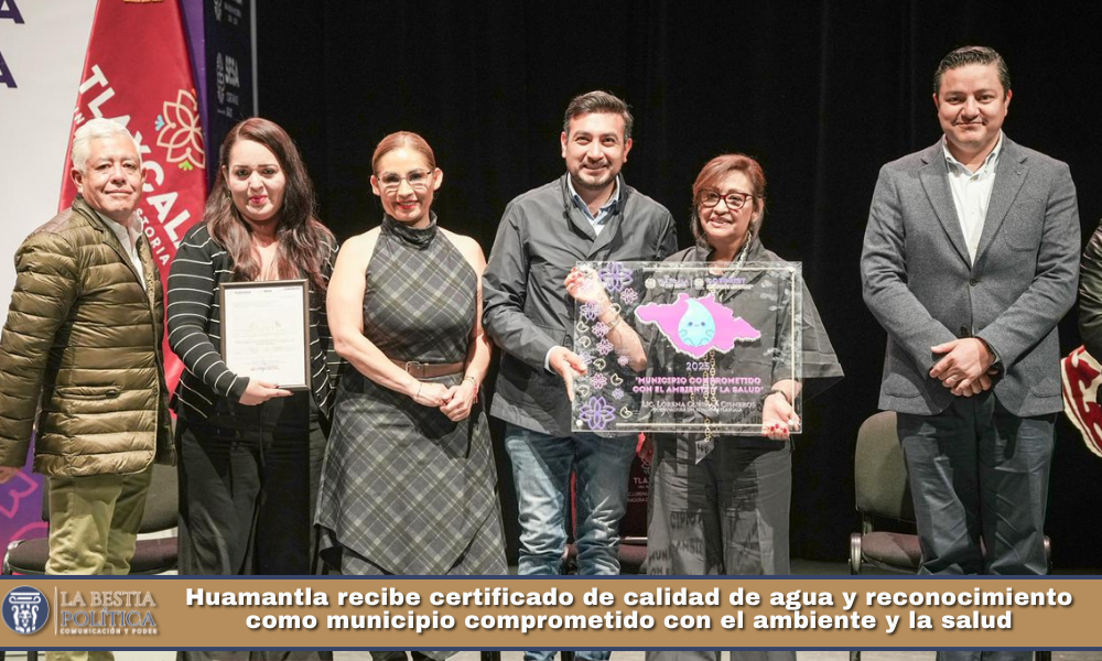 El presidente municipal de Huamantla, Salvador Santos Cedillo, recibió de manos de la gobernadora del estado, Lorena Cuéllar Cisneros, el Certificado de Calidad de Agua para Uso y Consumo Humano, así como la placa “Municipio Comprometido con el Ambiente y la Salud”, reconocimiento que distingue al municipio por garantizar un servicio de agua potable seguro y de calidad para las familias huamantlecas.