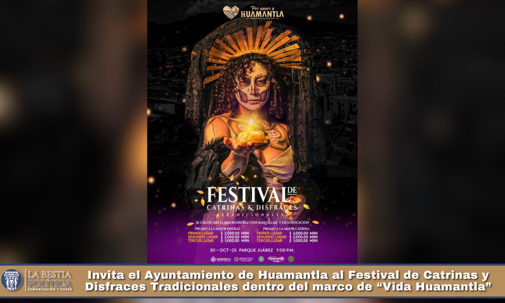 Como parte de las actividades del festival cultural “Vida Huamantla”, el H. Ayuntamiento de Huamantla invita a niñas, niños, jóvenes y adultos a participar en el Festival de Catrinas y Disfraces Tradicionales, que se llevará a cabo este jueves 30 de octubre a las 19:00 horas en el Escenario TIM del Parque Juárez.