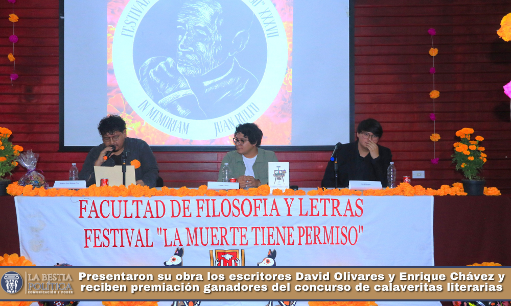 De igual forma, en esta jornada, estudiantes ganadores del concurso de calaveritas del Festival recibieron sus respectivos premios en reconocimiento a su creatividad y conocimiento. Los trabajos fueron evaluados por los escritores Enrique Chávez y David Olivares.