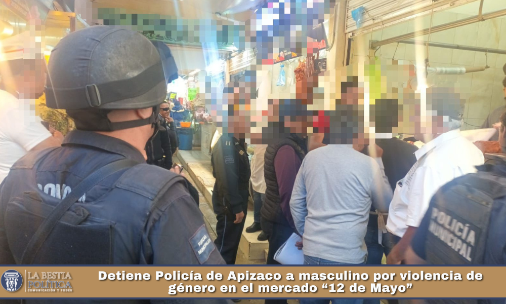 Elementos de la Dirección de Seguridad Pública Municipal de Apizaco detuvieron a un masculino por su responsabilidad en un hecho de violencia de género, registrado al interior del mercado “12 de Mayo”, ubicado sobre la avenida Xicohténcatl.