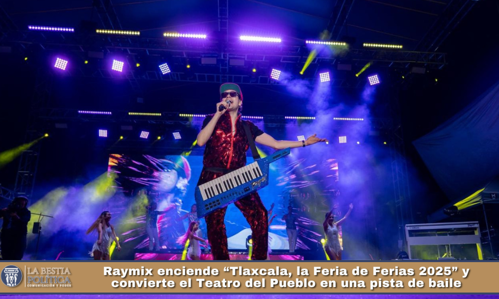 El ritmo de la electrocumbia se apoderó del Teatro del Pueblo de “Tlaxcala, la Feria de Ferias 2025”, con la presentación de Raymix, quien ofreció un espectáculo vibrante ante miles de asistentes que llenaron el recinto para cantar y bailar sus más grandes éxitos.