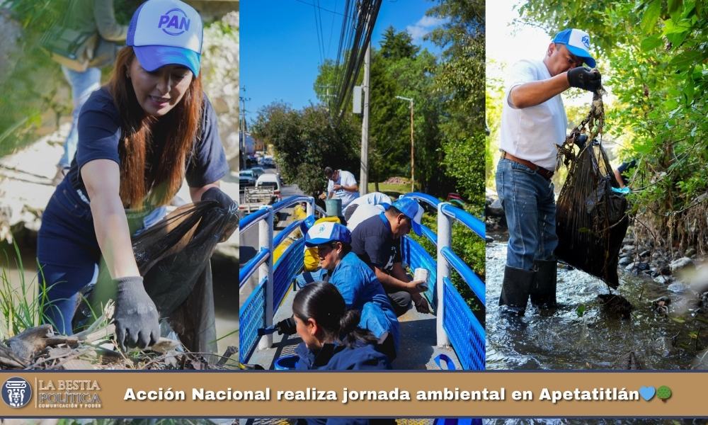 En una muestra de compromiso con el medio ambiente y el bienestar de las familias, el dirigente estatal del Partido Acción Nacional, Ángelo Gutiérrez, la diputada local Miriam Martínez Sánchez y el delegado municipal del PAN en Apetatitlán, Iván Teomitzi, encabezaron una jornada de limpieza en el río de Las Cuevas y en la zona ecológica La Aztequita.