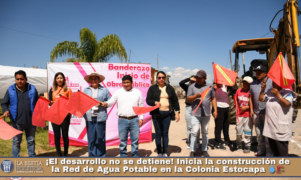 La presidenta municipal de La Magdalena Tlaltelulco, Rocío Meléndez, encabezó el banderazo de inicio de obra para la construcción de la Red de Agua Potable en la Privada 22 de diciembre, ubicada en la Colonia Estocapa, acción que beneficiará a decenas de familias de esta zona.