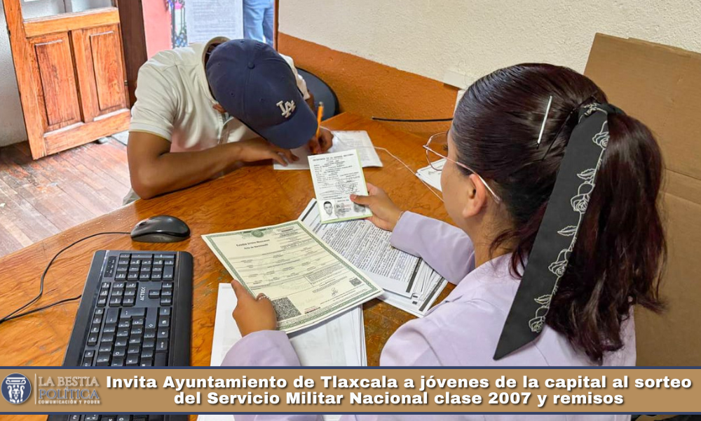 El Ayuntamiento de Tlaxcala invita a los jóvenes nacidos en el año 2007 y remisos que realizaron su registro en la Junta Municipal de Reclutamiento durante el presente año, a participar en el sorteo del Servicio Militar Nacional, que se llevará a cabo el domingo 9 de noviembre de 2025 a las 8:00 horas en el estacionamiento número 1 de la presidencia municipal, con acceso por la entrada principal.