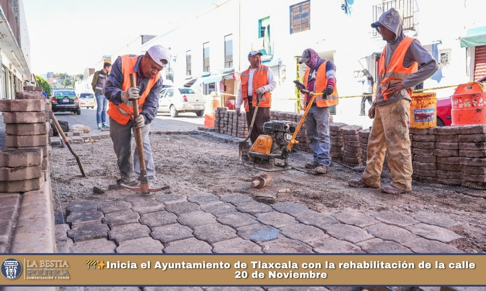 El Ayuntamiento de Tlaxcala comenzó este jueves los trabajos de rehabilitación y renivelación de la calle 20 de Noviembre, una de las vialidades más transitadas y emblemáticas del centro histórico de la capital, que en las últimas semanas presentó hundimientos y deterioro provocados por las lluvias y el desgaste natural derivado del tránsito constante de vehículos y transporte público.