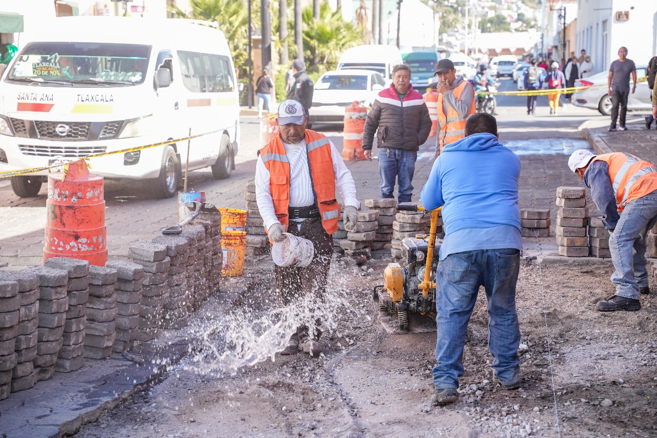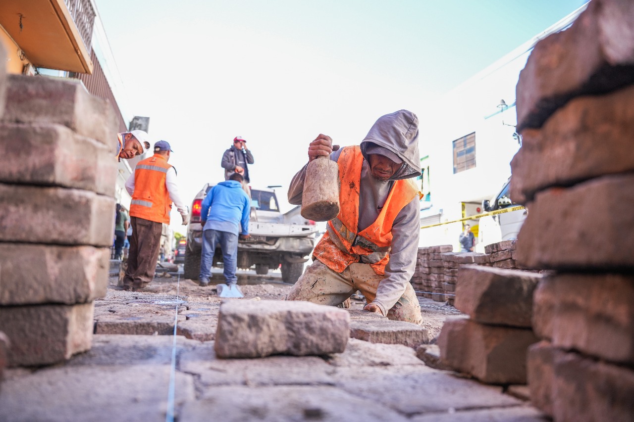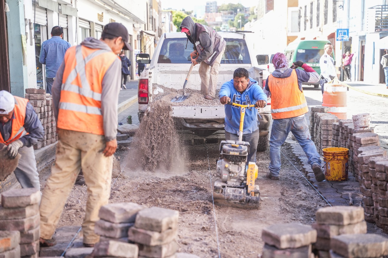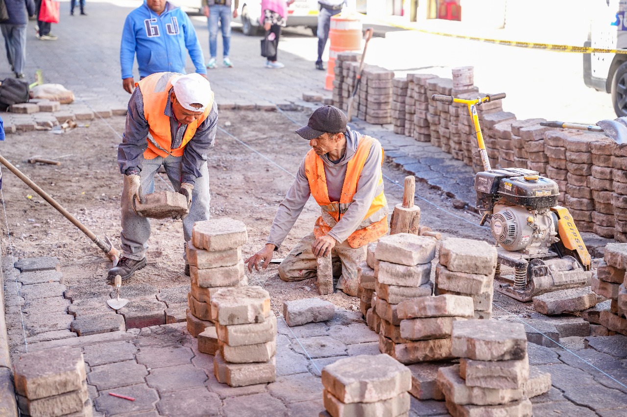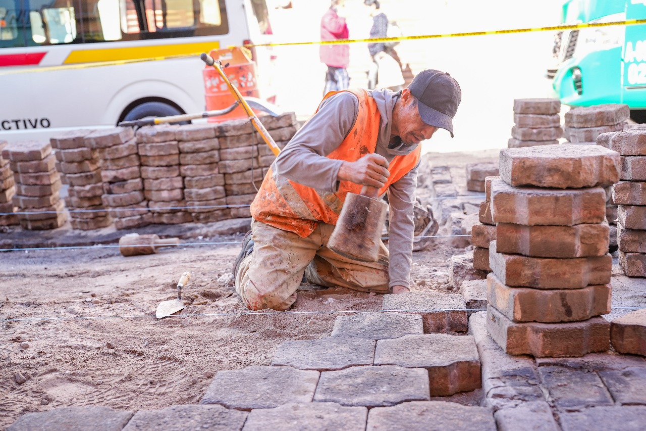 En su primera etapa, los trabajos consisten en la nivelación del adoquín, la reconformación de las capas de terracería e hidráulica y el refuerzo de la base del pavimento, con el propósito de aumentar su durabilidad ante el peso vehicular y las condiciones climáticas.