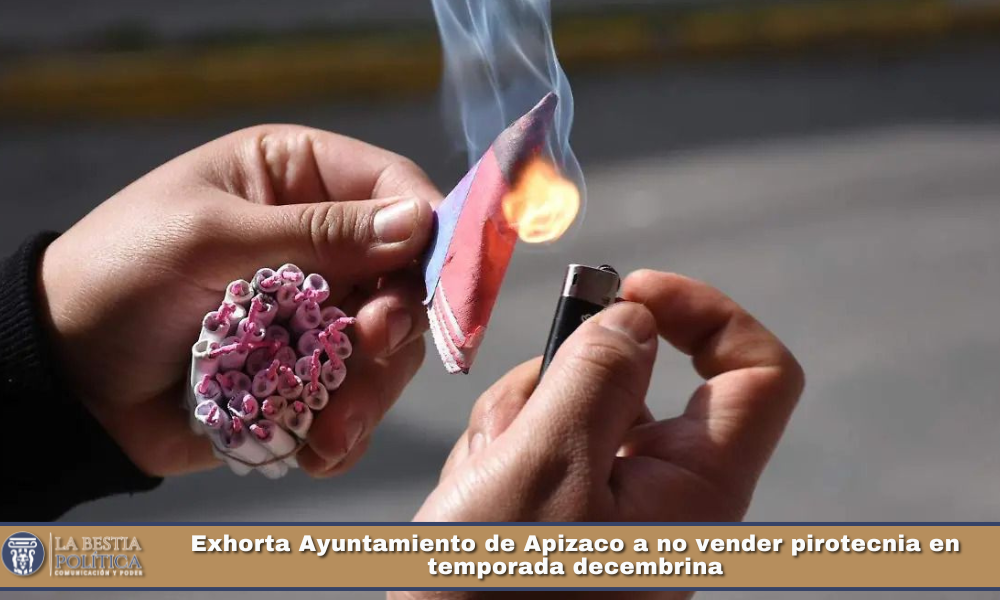El Ayuntamiento de Apizaco, a través de la Coordinación de Comercio en Vía Pública, informa a todos los comerciantes establecidos y ambulantes del municipio que queda estrictamente prohibida la venta, exhibición, almacenamiento o distribución de artículos pirotécnicos, cuetes, cohetones, fuegos artificiales o cualquier otro artefacto explosivo o incendiario, durante la temporada decembrina.