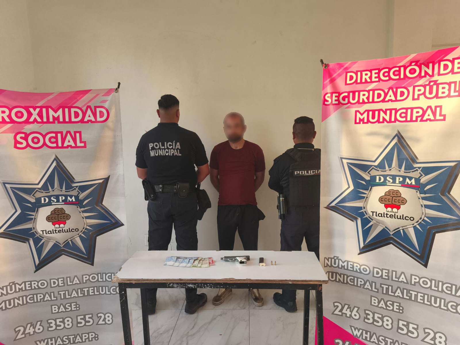 El individuo, identificado como Víctor N., de 32 años, fue asegurado por los oficiales, quienes además realizaron el levantamiento de indicios y la incautación de un arma de fuego, cartuchos útiles, un cargador y una motocicleta color negro presuntamente utilizada para cometer el delito.
