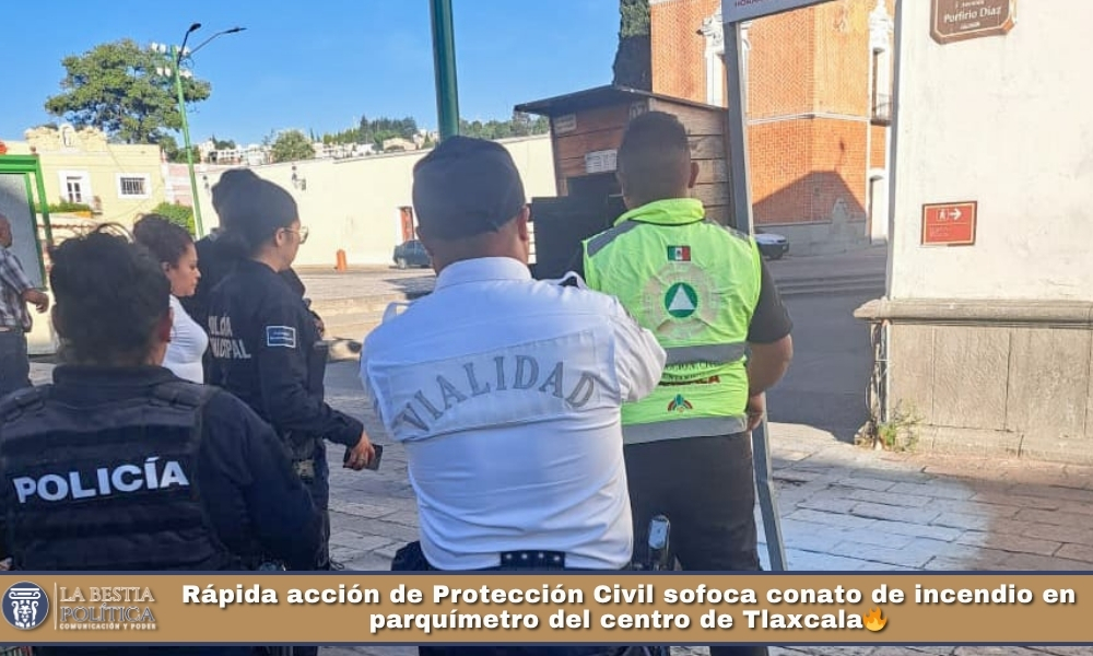 La Coordinación Municipal de Protección Civil del Ayuntamiento de Tlaxcala actuó de manera inmediata para controlar un conato de incendio registrado en un parquímetro ubicado entre las calles Primero de Mayo y Porfirio Díaz, en pleno centro histórico de la capital.
