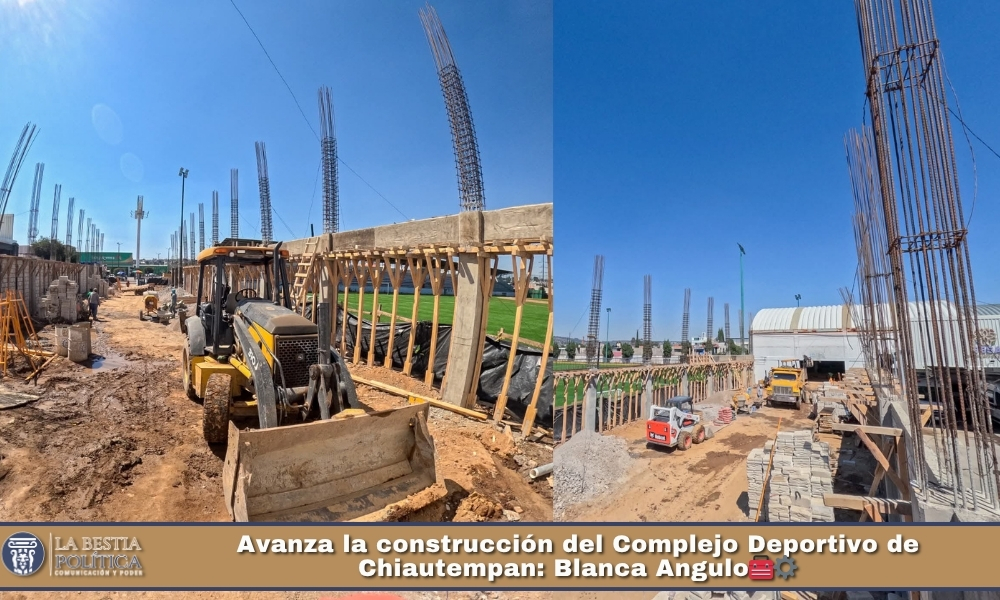 Chiautempan, Tlaxcala.– La presidenta municipal Blanca Angulo Meneses informó que continúan los avances en la construcción del Complejo Deportivo de Chiautempan, una obra emblemática que se desarrolla en coordinación con el Gobierno del Estado, encabezado por la gobernadora Lorena Cuéllar Cisneros, a través del programa “Peso a Peso”.