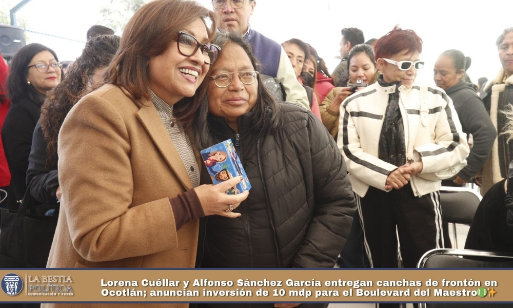 Tlaxcala, Tlax.– La gobernadora del estado, Lorena Cuéllar Cisneros, y el presidente municipal de Tlaxcala capital, Alfonso Sánchez García, encabezaron este martes la entrega oficial de las canchas de frontón en la comunidad de Ocotlán, una obra que forma parte del compromiso compartido entre el gobierno estatal y el ayuntamiento para fortalecer la infraestructura deportiva y social en la capital del estado.
