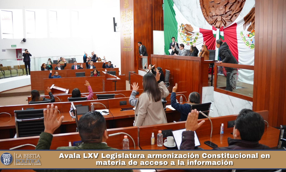 En el desarrollo de la Vigésima Sesión Ordinaria del Congreso del Estado de Tlaxcala, las diputadas y diputados integrantes de la LXV Legislatura aprobaron por unanimidad de votos la Iniciativa con Proyecto de Decreto que tiene como propósito armonizar el texto de la Constitución local con las disposiciones en materia de acceso a la información pública y protección de datos personales, previstas en la Constitución Política de los Estados Unidos Mexicanos. La propuesta fue presentada por la ciudadana Lorena Cuéllar Cisneros, en su carácter de Gobernadora del Estado de Tlaxcala, asistida por el ciudadano Luis Antonio Ramírez Hernández, Secretario de Gobierno.
