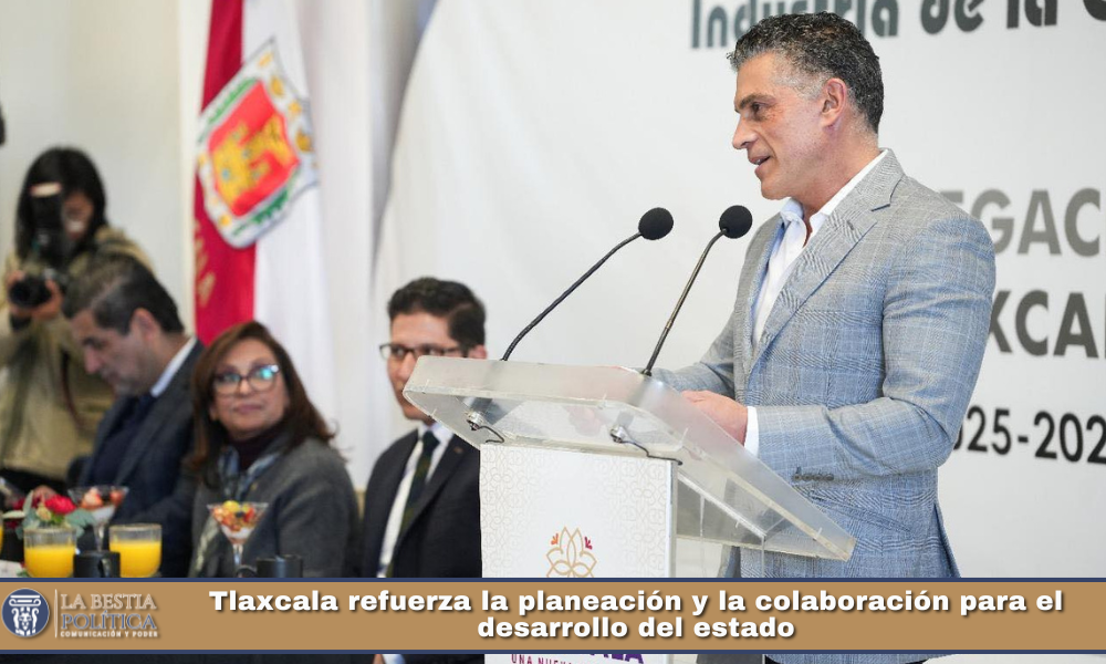 Durante su participación en la entrega del Banco de Proyectos CMIC 2025–2050, el alcalde acompañó a la gobernadora Lorena Cuéllar Cisneros en el acto encabezado por Pedro Enrique Guarneros Ortiz, presidente de la Cámara Mexicana de la Industria de la Construcción (CMIC) Delegación Tlaxcala. En dicho encuentro, se presentó una hoja de ruta que guiará el crecimiento sostenible e incluyente del estado durante los próximos 25 años.