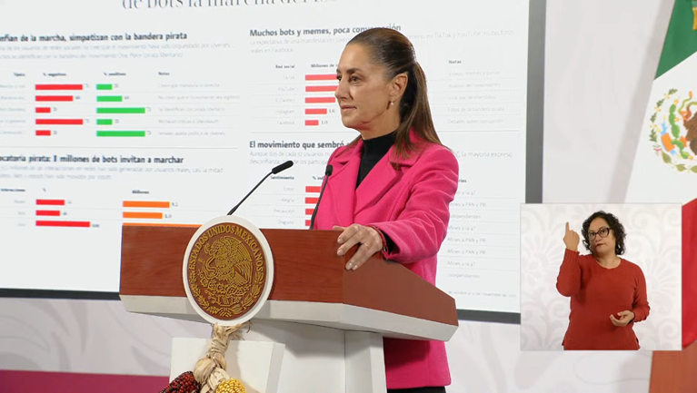 Sheinbaum también alertó sobre publicaciones en redes sociales donde circulan “manuales” para derribar vallas o utilizar sustancias corrosivas durante próximas movilizaciones.