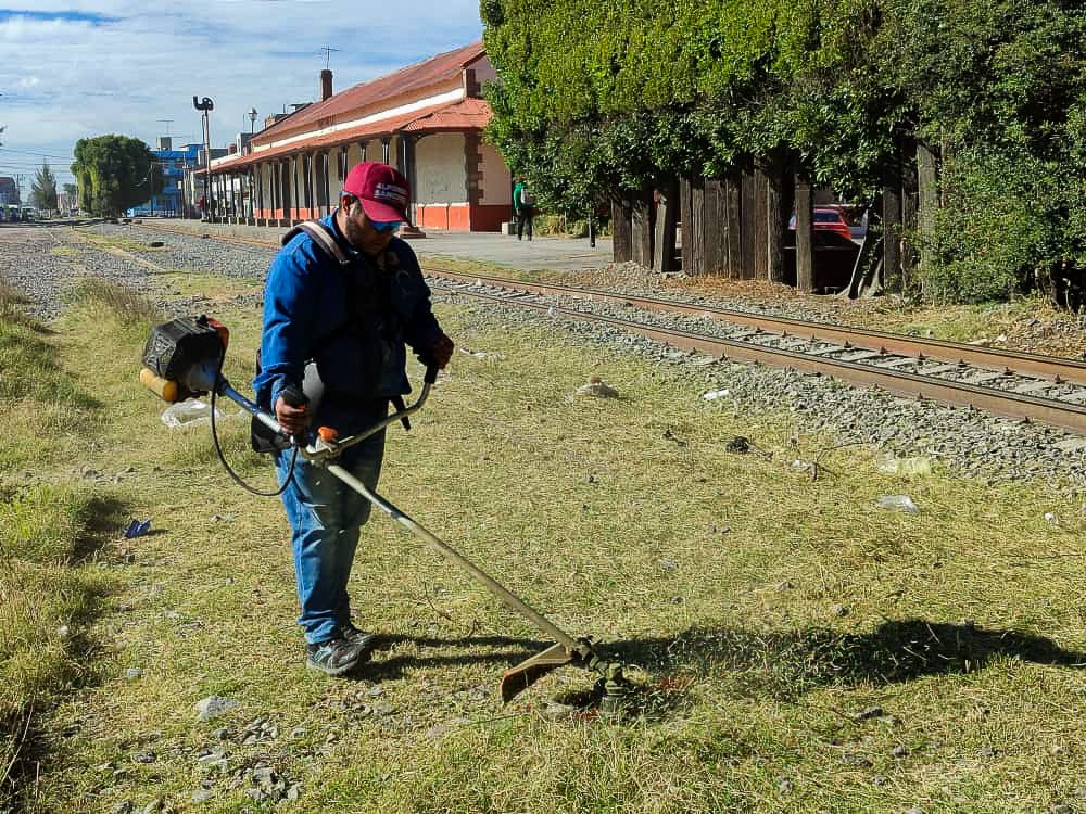 En continuidad con el programa permanente de limpieza y mantenimiento de espacios públicos instruido por la presidenta municipal Blanca Angulo Meneses, el Gobierno de Chiautempan llevó a cabo una jornada de saneamiento en la zona de la antigua estación del tren, con el objetivo de mejorar la imagen urbana y conservar uno de los espacios históricos más representativos del municipio.