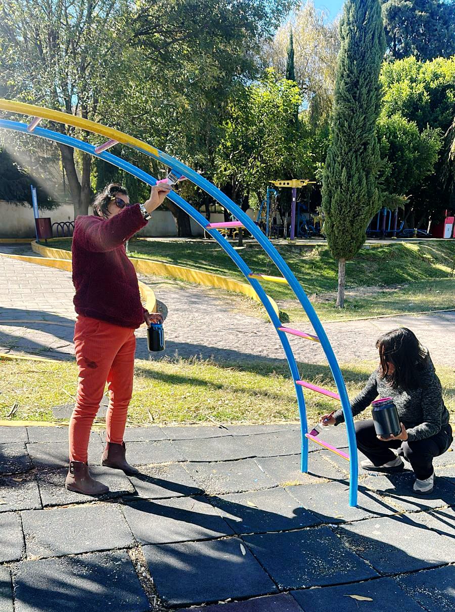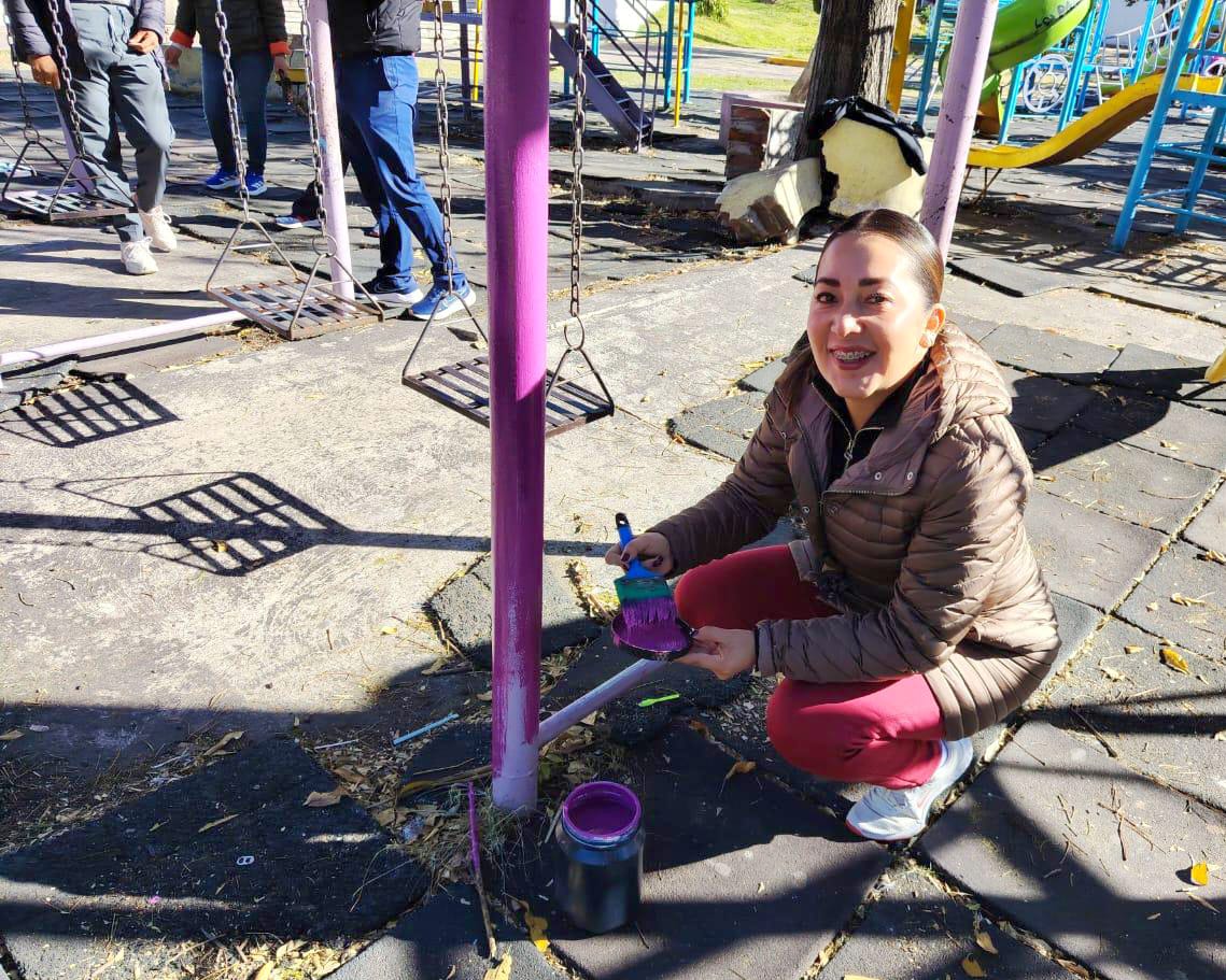 Detalló que la intervención incluye reparación de estructuras, aplicación de pintura, ajuste de piezas y revisión general de seguridad, con el objetivo de garantizar que niñas y niños disfruten de instalaciones seguras y en buen estado.