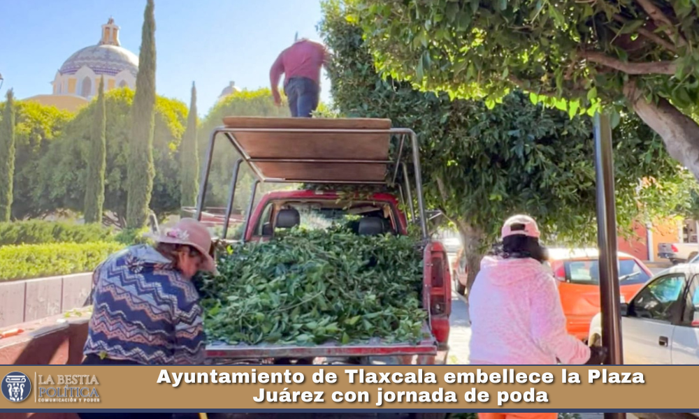 El Gobierno Municipal de Tlaxcala, encabezado por el alcalde Alfonso Sánchez García, continúa con las acciones de mantenimiento urbano para garantizar espacios públicos seguros, ordenados y funcionales. Como parte de estos trabajos, la Dirección de Servicios Públicos llevó a cabo una jornada de poda en la emblemática Plaza Juárez, uno de los puntos más transitados de la capital.
