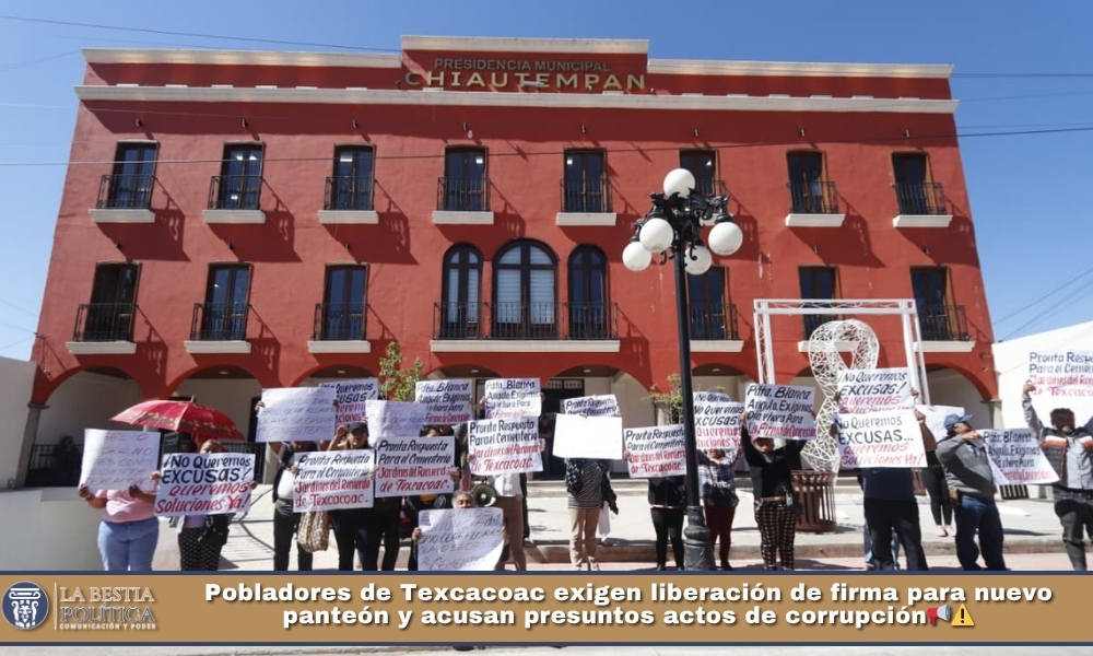 Durante la protesta, los habitantes reclamaron que la negativa de las autoridades ha frenado un proyecto urgente para la comunidad, debido a la saturación del panteón actual y a la necesidad de contar con un nuevo espacio digno para las familias de Texcacoac. Señalaron que, pese a haber cumplido con los requisitos y gestiones correspondientes, la firma continúa detenida sin explicación formal.