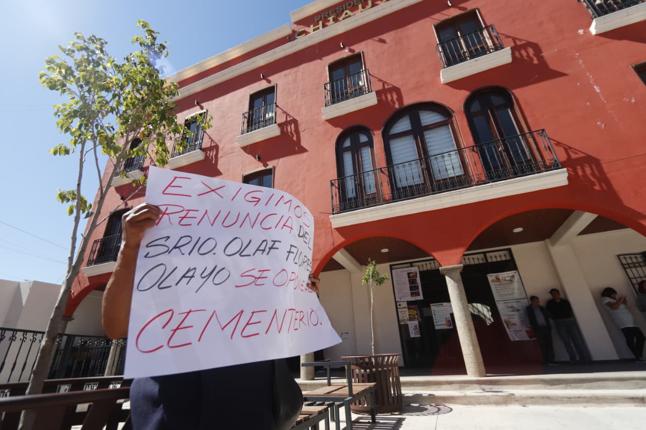 Los inconformes señalaron directamente al síndico municipal, Cristóbal Cruz, y al secretario del Ayuntamiento, Olaf Flores, a quienes acusaron de retrasar de manera deliberada la firma del documento y presuntamente solicitar dinero a cambio de autorizarlo.