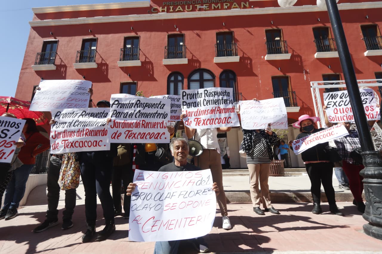 Pobladores de la comunidad de Texcacoac, en el municipio de Chiautempan, se manifestaron la tarde de este miércoles frente a la presidencia municipal para exigir la liberación de la firma que autoriza la concesión para la construcción de un nuevo panteón comunitario, proyecto que —aseguran— han gestionado y financiado por cuenta propia desde hace varios meses.