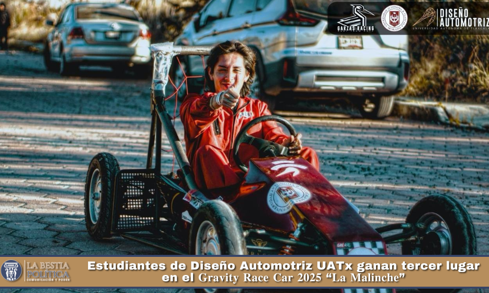 Estudiantes de quinto y séptimo semestres de la Licenciatura en Diseño Automotriz de la Universidad Autónoma de Tlaxcala (UATx) conquistaron el 𝐭𝐞𝐫𝐜𝐞𝐫 𝐥𝐮𝐠𝐚𝐫 𝐞𝐧 𝐥𝐚 𝐜𝐚𝐭𝐞𝐠𝐨𝐫𝐢́𝐚 𝐩𝐫𝐨𝐟𝐞𝐬𝐢𝐨𝐧𝐚𝐥 del 𝐆𝐫𝐚𝐯𝐢𝐭𝐲 𝐑𝐚𝐜𝐞 𝐂𝐚𝐫 𝟐𝟎𝟐𝟓 “𝐋𝐚 𝐌𝐚𝐥𝐢𝐧𝐜𝐡𝐞”, realizado el 15 y 16 de noviembre en un escenario desafiante por sus paisajes, curvas y pendientes que reunió a escuderías de las mejores instituciones del país.