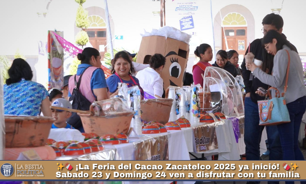 Zacatelco celebró este sábado la inauguración de la 12ª edición de la Feria del Cacao 2025, una festividad que honra la tradición, el trabajo y la identidad cultural de las productoras zacatelquenses. El evento, realizado en el corazón del municipio, reunió a familias, productores y visitantes que disfrutaron de una jornada llena de historia y sabor.