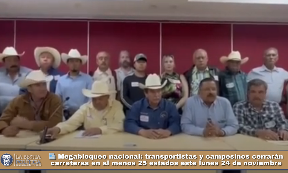 México se prepara para una de las movilizaciones más grandes de los últimos años. Transportistas y campesinos anunciaron un megabloqueo nacional que iniciará este lunes 24 de noviembre a las 8:00 de la mañana, con cierres totales de carreteras, toma de aduanas y la ocupación de oficinas de gobierno en al menos 25 estados del país.