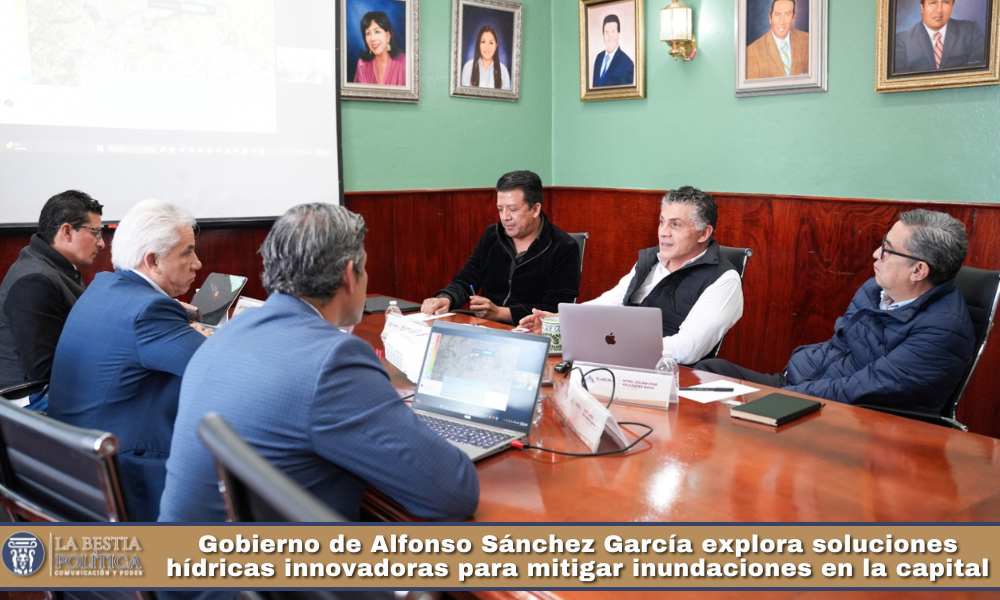 En un esfuerzo por construir respuestas integrales frente a las inundaciones que afectan a distintos puntos de la capital, el alcalde Alfonso Sánchez García sostuvo una reunión de trabajo con el Coordinador General de Planeación e Inversión del Estado, Noé Rodríguez Roldán, y representantes de la empresa Bionia, quienes presentaron una propuesta técnica basada en acuíferos artificiales.